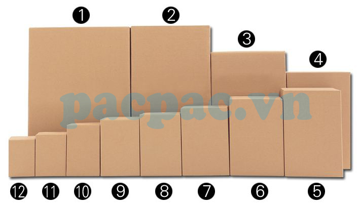 Hộp carton rất nhiều kích cỡ khác nhau phù hợp với việc đóng gói các hàng hóa khác nhau